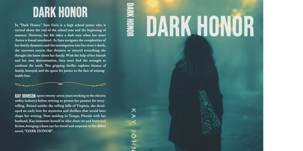 Kay Johnson spent twenty-seven years working in the electric utility industry before retiring to pursue her passion for storytelling. Raised amidst the rolling hills of Virginia, she developed an early love for mysteries and thrillers that would later shape her writing. Now residing in Tampa, Florida with her husband, Kay immerses herself in who-done-its and historical fiction, bringing a keen eye for detail and suspense to her debut novel, “DARK HONOR”.